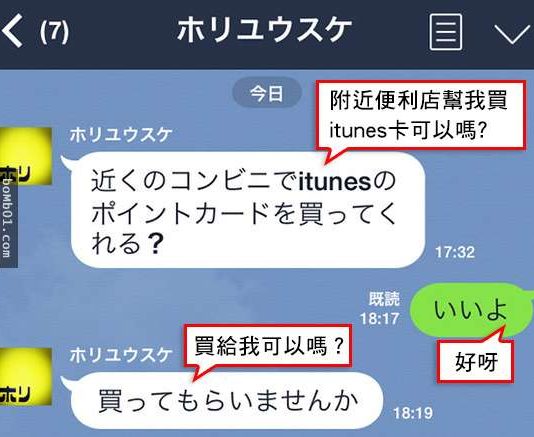 最近使用LINE的人數眾多,隨著所帶來的便利性,詐騙集團也開始以Line傳訊息,利用使用Line的用戶免費取得Itunes的點數卡充值。而這件事在日本也很常發生,比如這一名日本網友。他透過Line收到詐騙訊息,騙子要求Line的使用者去買點數卡,然後再把卡上的序號拍照上傳給他。當然這位日本網友非常精明,他為了讓騙子也感受到被人騙的滋味,...