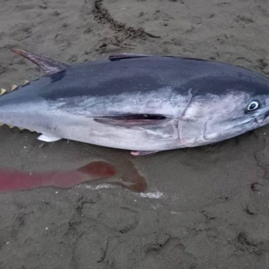 苗栗縣後龍鎮一名唐姓漁民,10日清晨到海邊收漁網時,竟發現網內有一尾長約165公分的大魚。他嚇了一跳,連忙上網查詢,沒想到竟是黃鰭鮪魚!漁民唐先生驚喜表示「捕魚6年來,從未在後龍海邊見過黑鮪魚」,而且牠還是自投羅網的~ (圖片來源:唐嘉信臉書)...